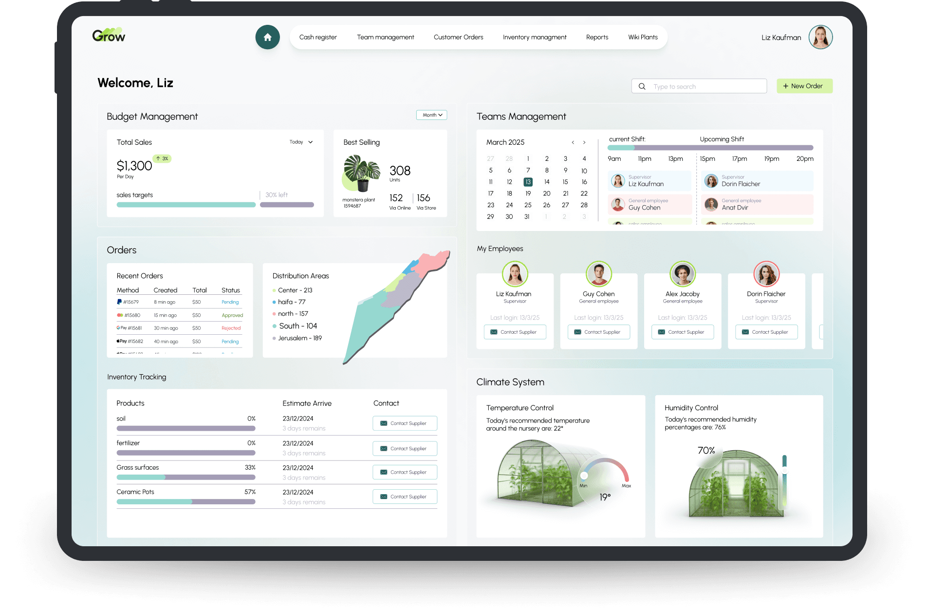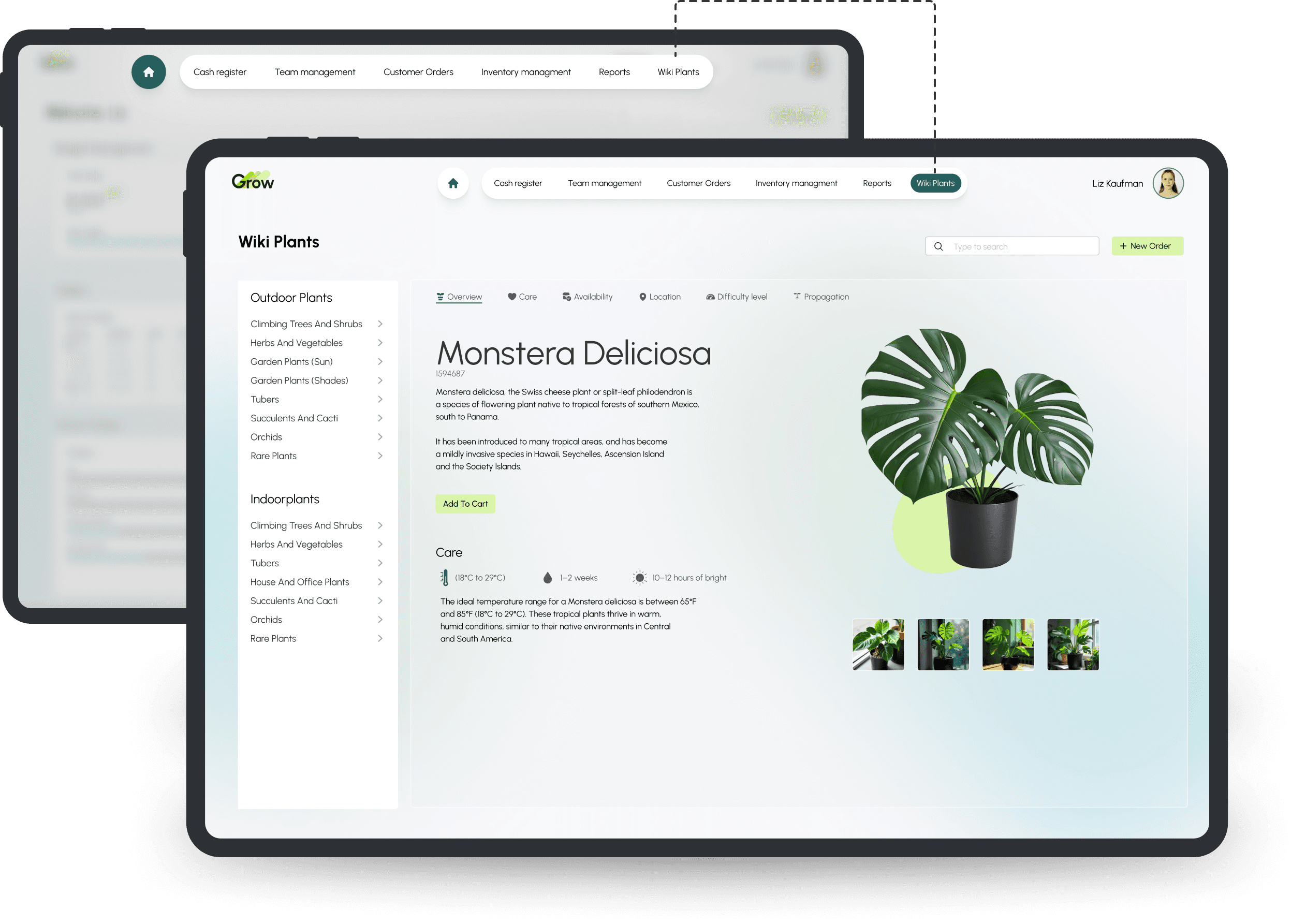 GROW simplifies operations with tools for employee management, point-of-sale functionality, and inventory control. Its built-in plant encyclopedia empowers employees to provide accurate care advice, while features like order management and integration with climate control systems ensure plants thrive year-round.