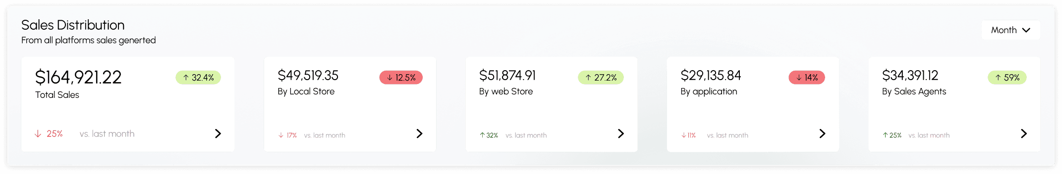 The widget provides a detailed breakdown of how sales are spread across different channels such as online sales, in-store purchases etc.