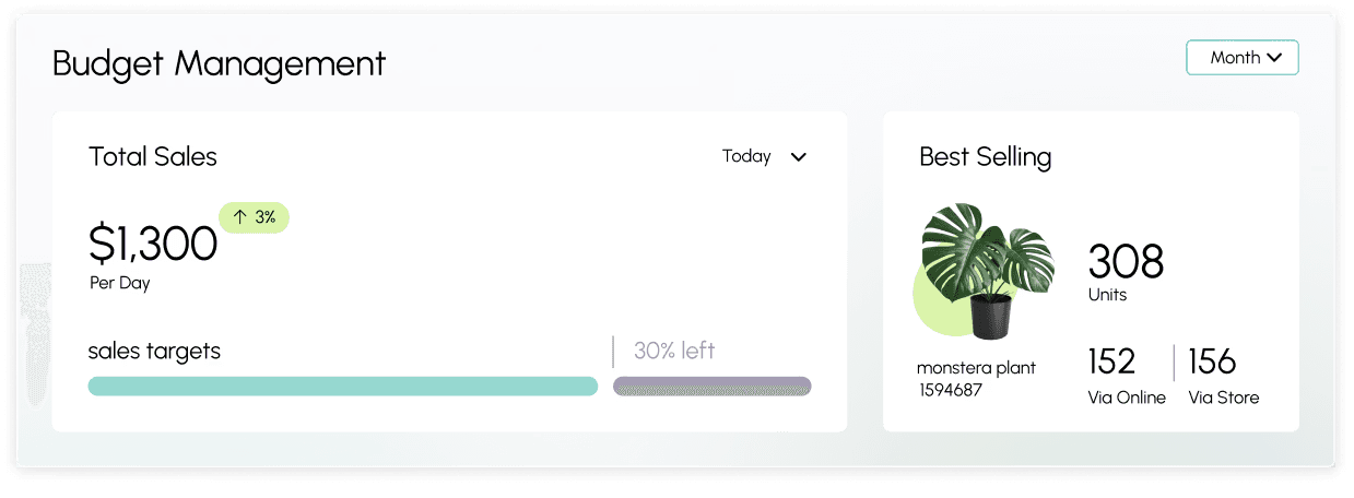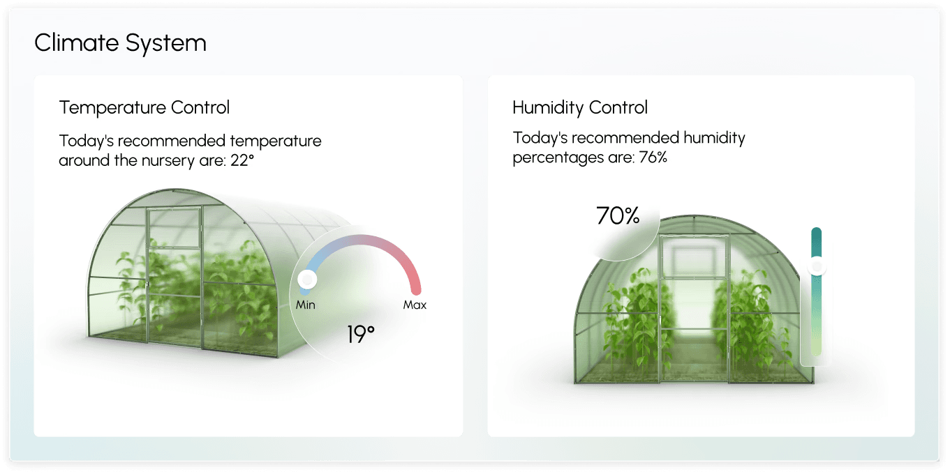 This widget enables the manager to monitor and adjust climate settings to maintain a healthy environment for plants, ensuring optimal conditions for growth and productivity. Displays revenue for the selected period