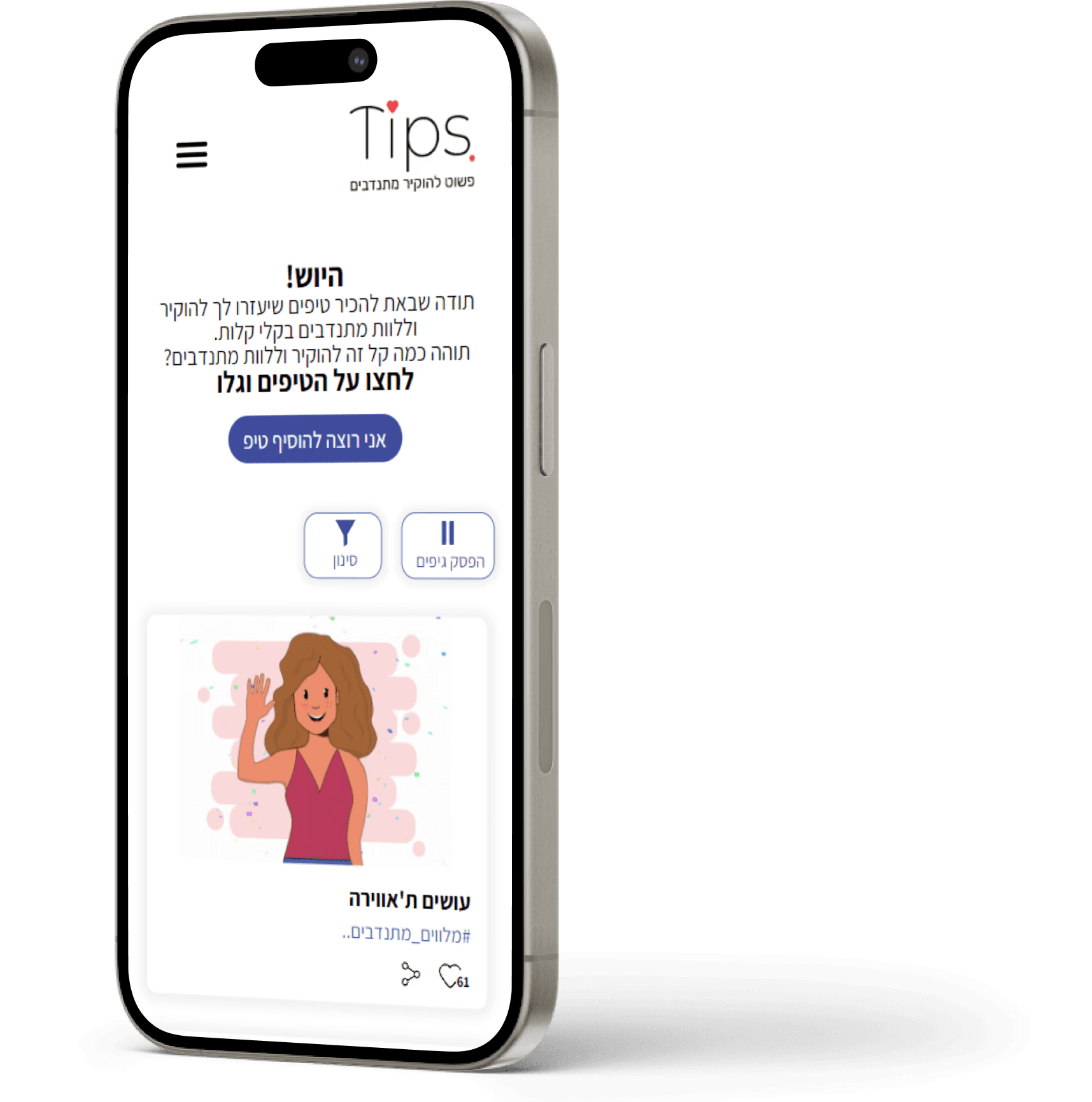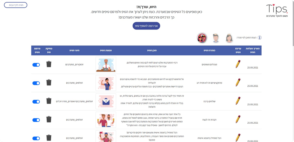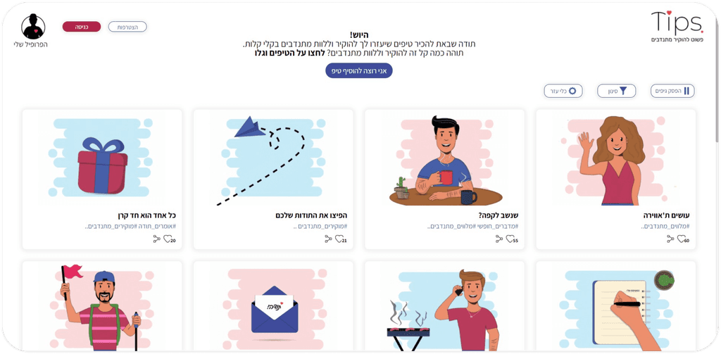 “Tips” is an interactive site that provides short tips on accompanying and appreciating volunteers. designed to address some of the The 'Israeli Volunteer Network’s' important goals.